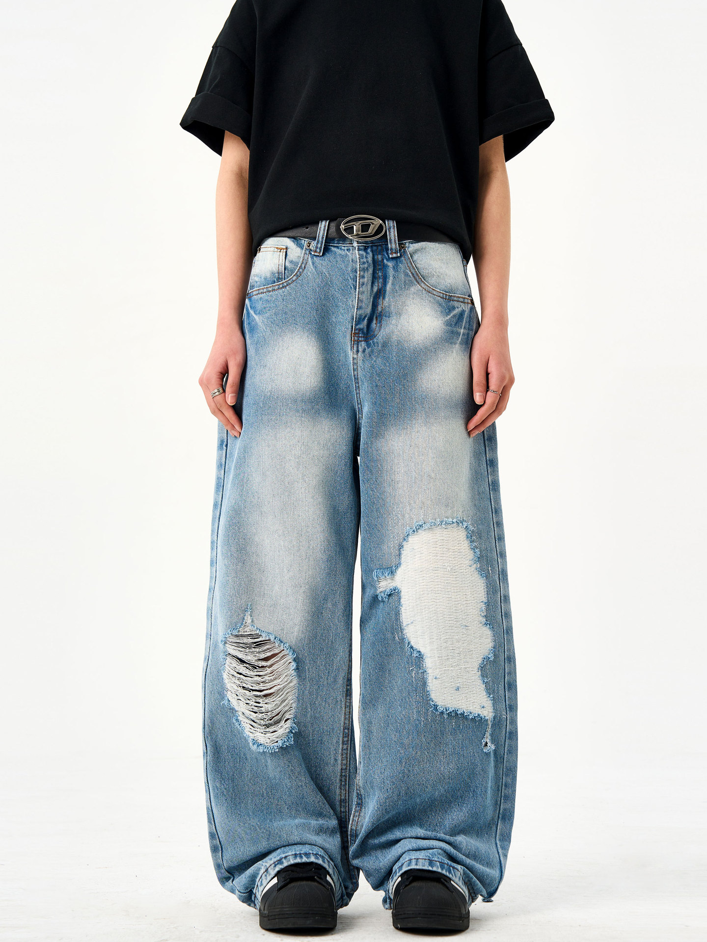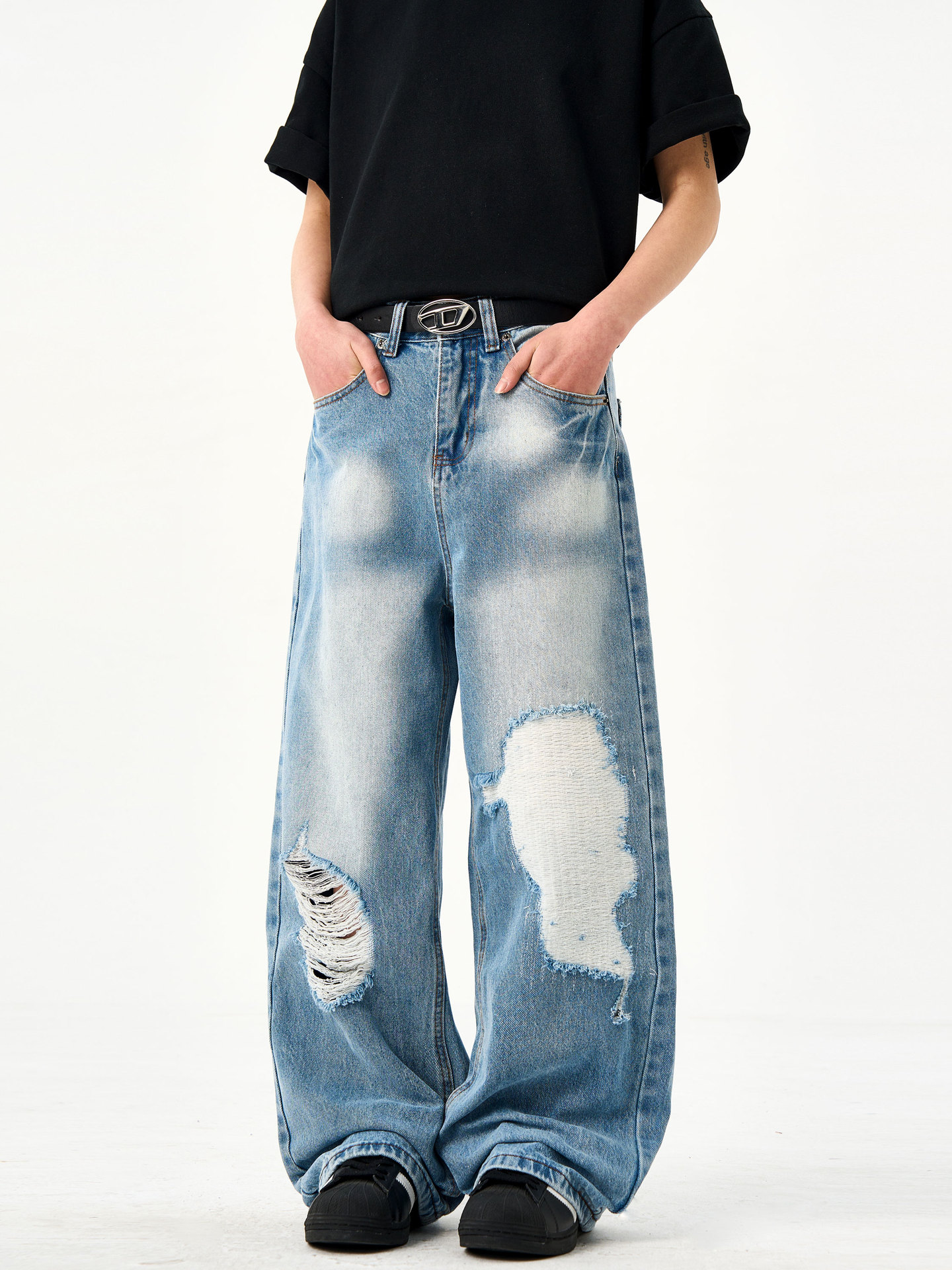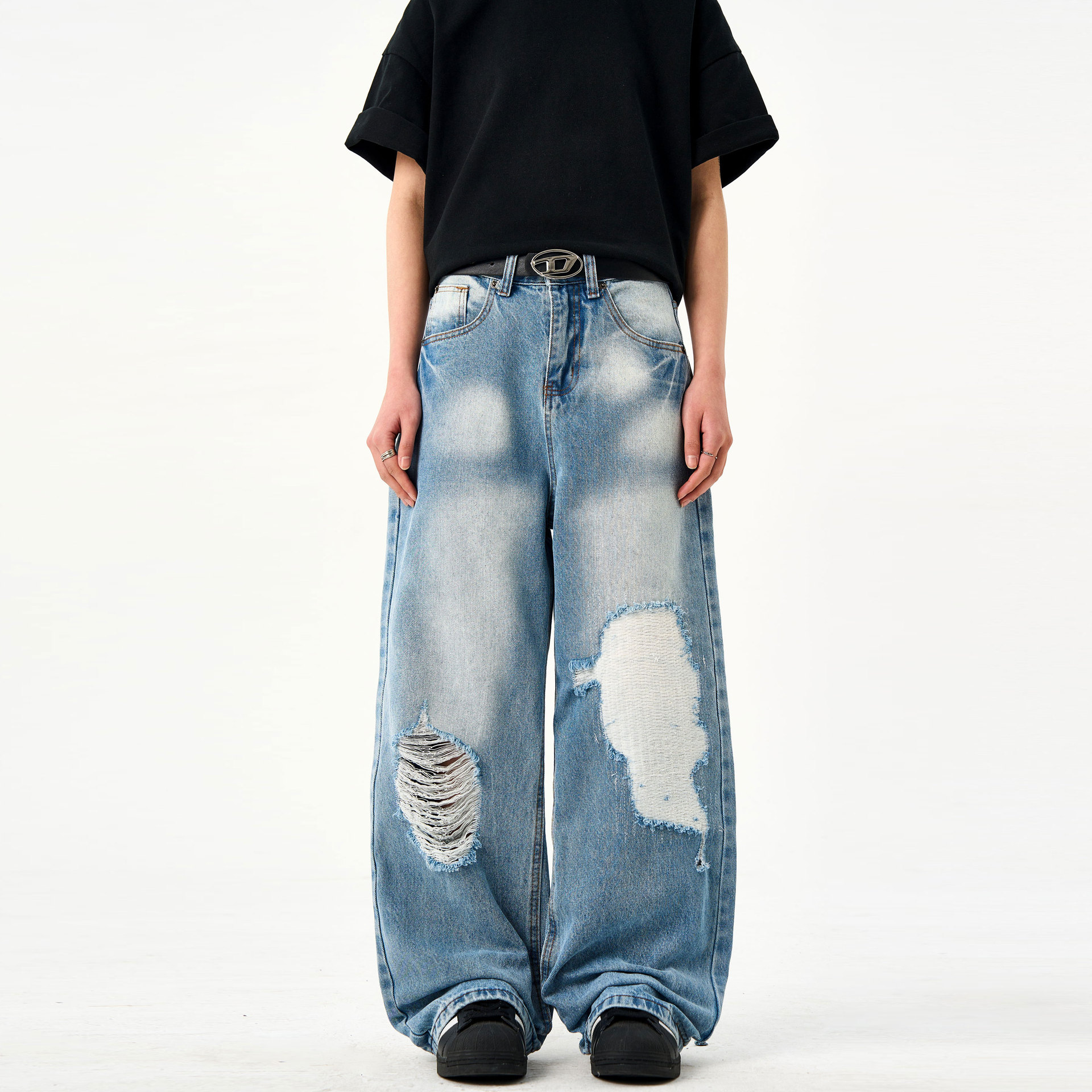 Be the first to review “Retro washed light blue ripped jeans for men and women in summer”